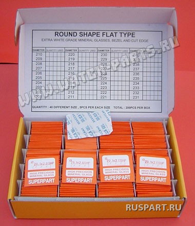 Стекла для наручных часов в наборе SUPERPARTS 160 шт, 2.0мм, 241-400мм