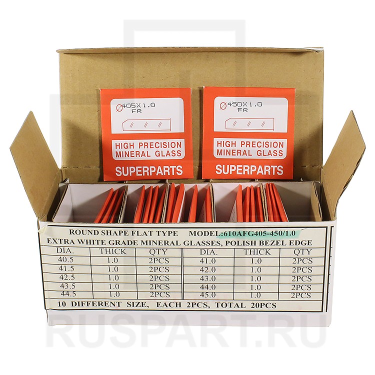 Стекла для часов в наборе SUPERPARTS (20 шт), плоские, 1.0мм, 405-450мм