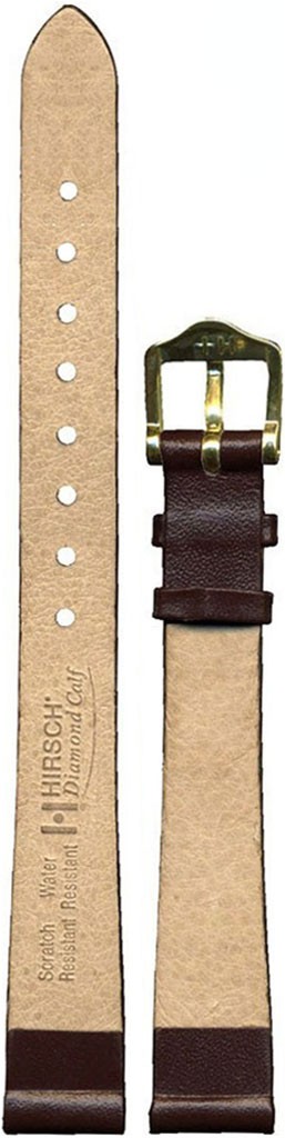 Ремешок из натуральной кожи, гладкий, поверхность «Анти-Скрэтч», коричневый, 12/10 mm, желтый замок.