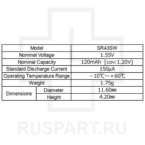 Батарейка кнопочная, оксид серебра RENATA SR43SWОписание: упаковка 10 шт на блистере