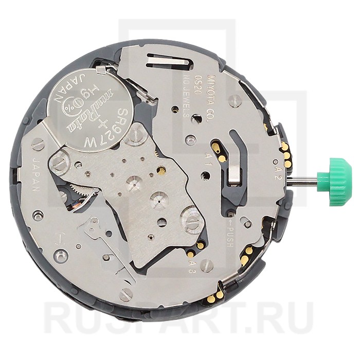 Механизм часовой в сборе MIYOTA 0S20Описание: MOVEMENT MIYOTA 0S20, SIZE 13 1/2''', 6 HANDS, DATE AT 4,30 TILT, HEIGHT 5,10