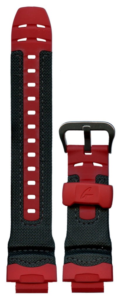 Оригинальный ремешок для часов CASIO черного цвета с красными вставками. Прочный и комфортный. Легко заменяется. Ремешок имеет уникальное крепление и подходит только для указанных моделей.