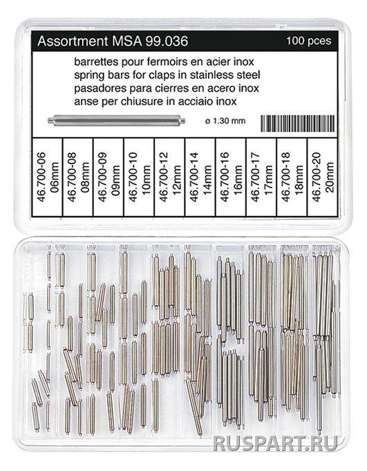 диаметр 1.3 мм. 100 шт. ASSORTMENT OF SPRING BARS FOR CLASPS, STAINLESS STEEL / 1.30 mm / 100 PIECES