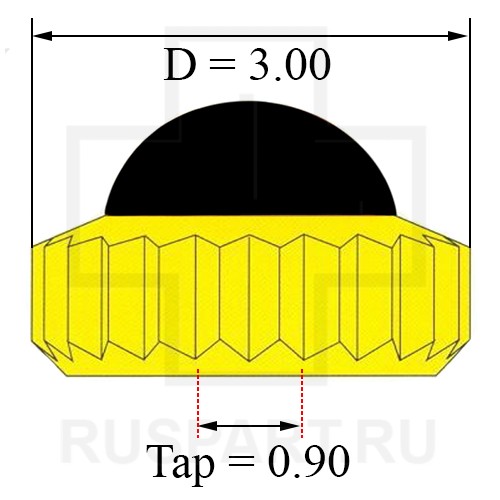 Переводная головка BELLONI CABOCHON, желтая с черным камнем, 3.00 / 0.90 мм