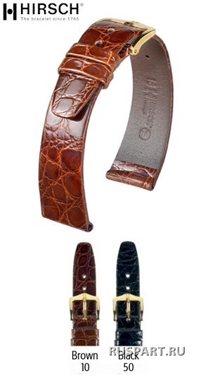 Кожа южноамериканского крокодила, прокрашенная по всей глубине волокон вручную отполированная для придания поверхности неповторимого блеска. Ровная тонкая набивка. Традиционная форма HIRSCH. Тонкий прямоугольный кончик. Застежка из нержавеющей стали в красивом традиционном дизайне от HIRSCH.