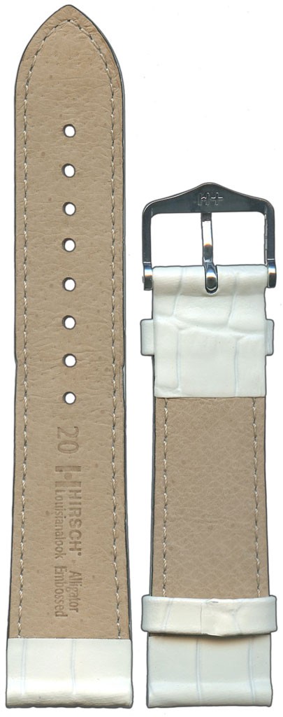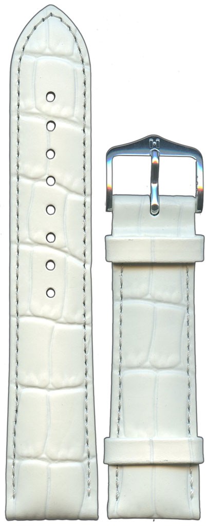 Ремешок из натуральной кожи, имитация аллигатора, белый, 20/18 mm, замок белый.