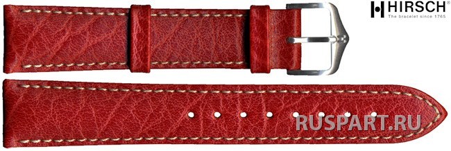 Ремешок из натуральной кожи, фактурный, красный, с белой отстрочкой, 18/16 mm, белый замок.