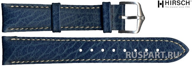Ремешок из натуральной кожи, фактурный, синий, с белой отстрочкой, 18/16 mm, белый замок.