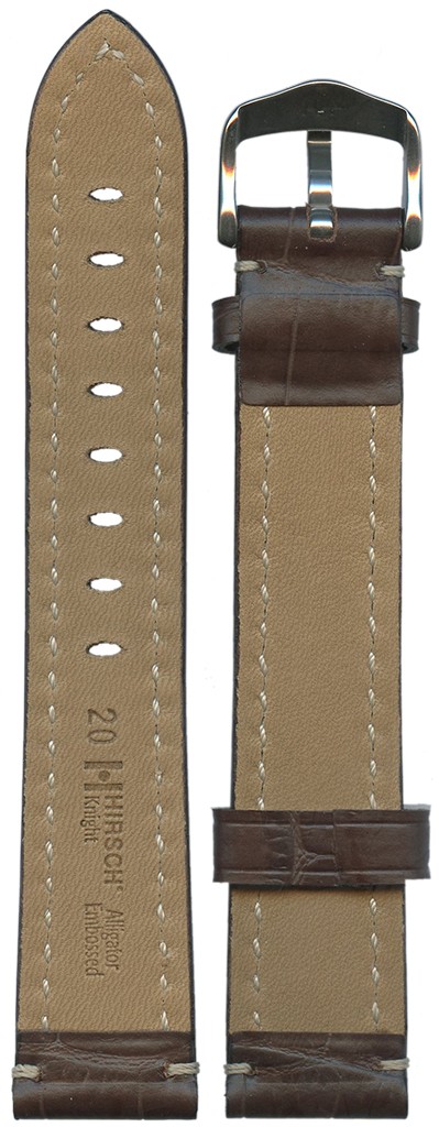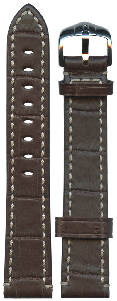 Ремешок из натуральной кожи, имитация аллигатора, коричневый, с белой отстрочкой, 20/18 mm, замок белый