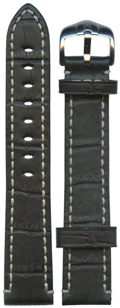 Ремешок из натуральной кожи, имитация аллигатора, черный, с белой отстрочкой, 20/18 mm, замок белый