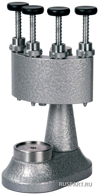 Потанс для установки стрелок HOROTEC 05.050Описание: Профессиональный пресс для идеальной установки стрелок наручных и карманных часов. Пресс имеет четыре стержня, позволяющие быстро и эффективно устанавливать стрелки без необходимости частой смены наса…