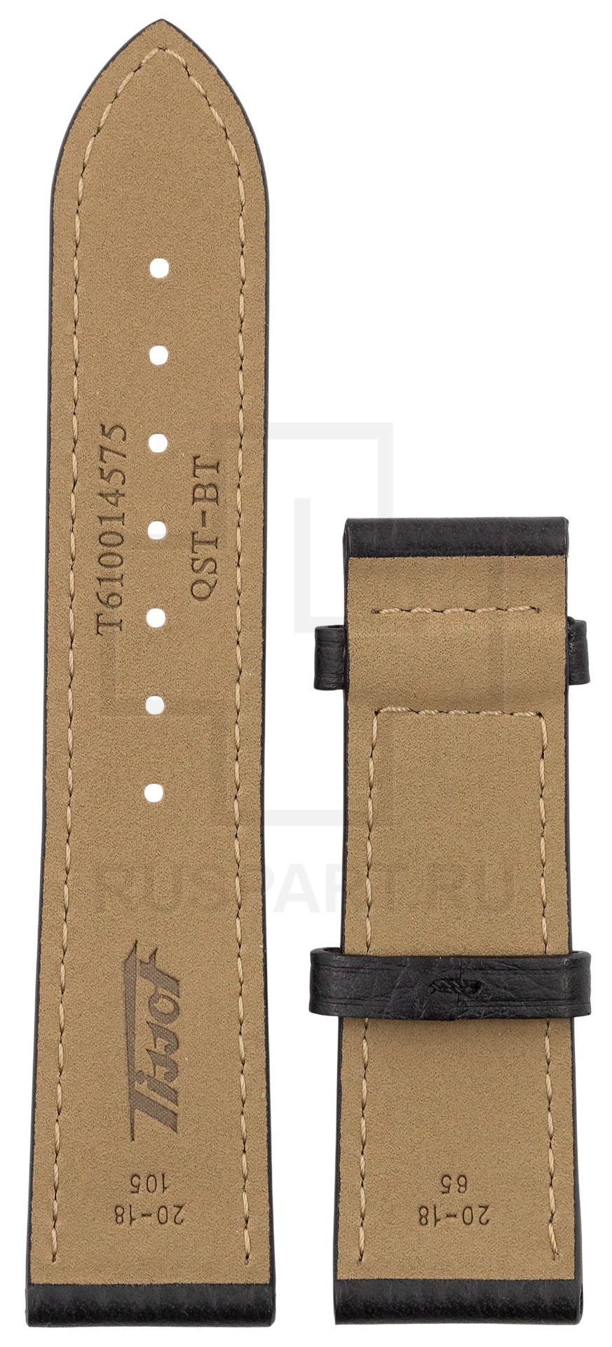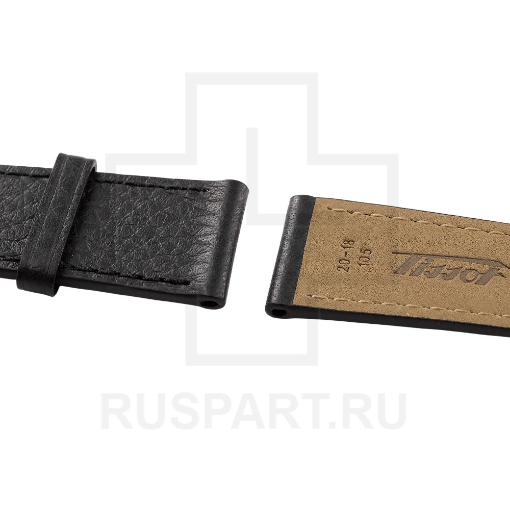 Кожаный ремешок TISSOT черного цвета, без замка. Ремешок имеет прямое крепление и подходит для всех часов Tissot с прямым креплением. Ремешок черный, теленок, 20/18, без замка, PRINCE