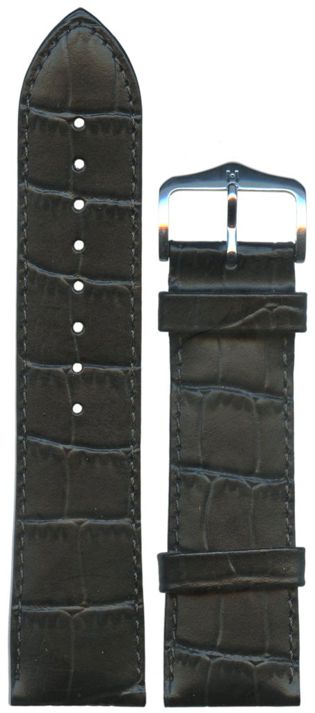 Ремешок из натуральной кожи, имитация аллигатора, черный, 24/22 mm, белый замок.