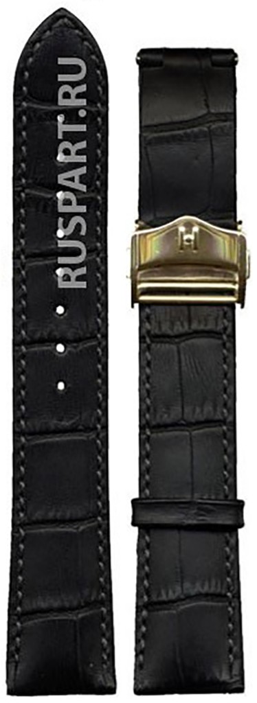Ремешок из натуральной кожи, иммитация аллигатора, черный, 18/16 mm, клипса желтая.