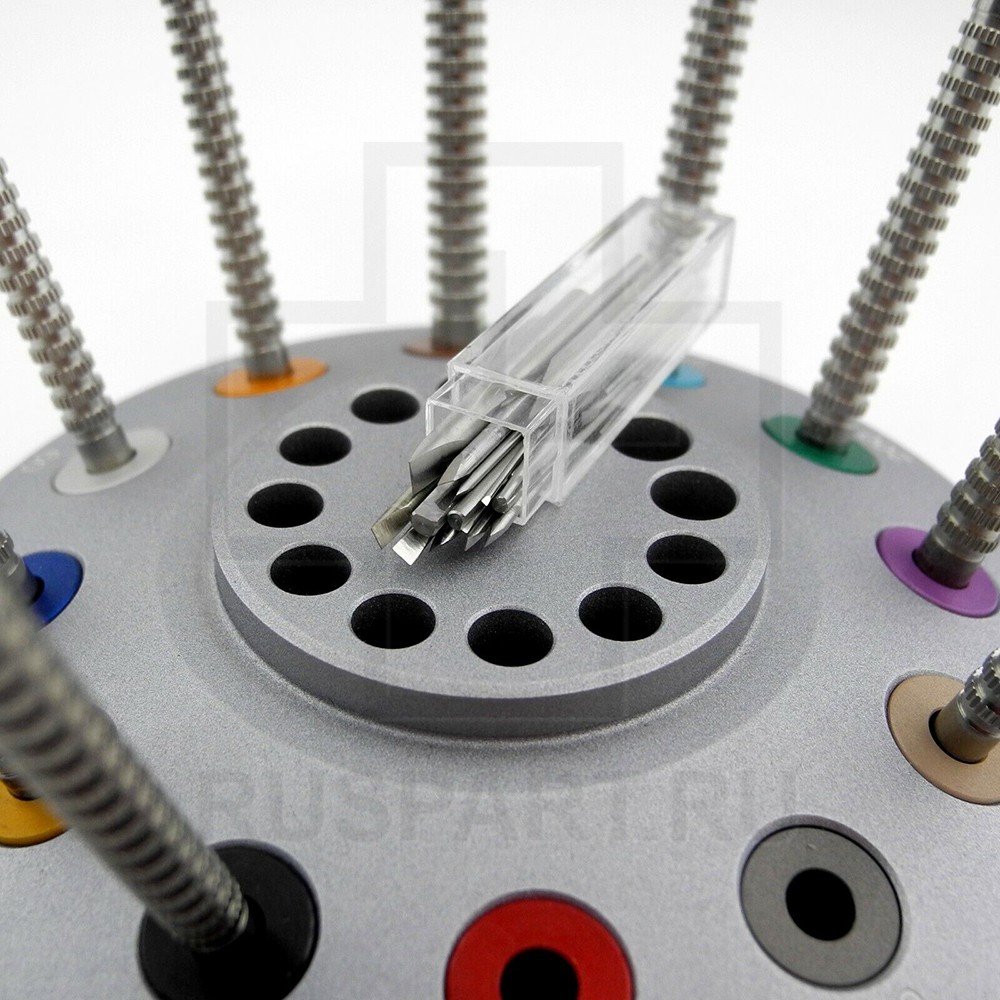 В комплекте 21 сменное жало из закаленной стали. Жала хранятся в специальном отсеке в центре подставки.