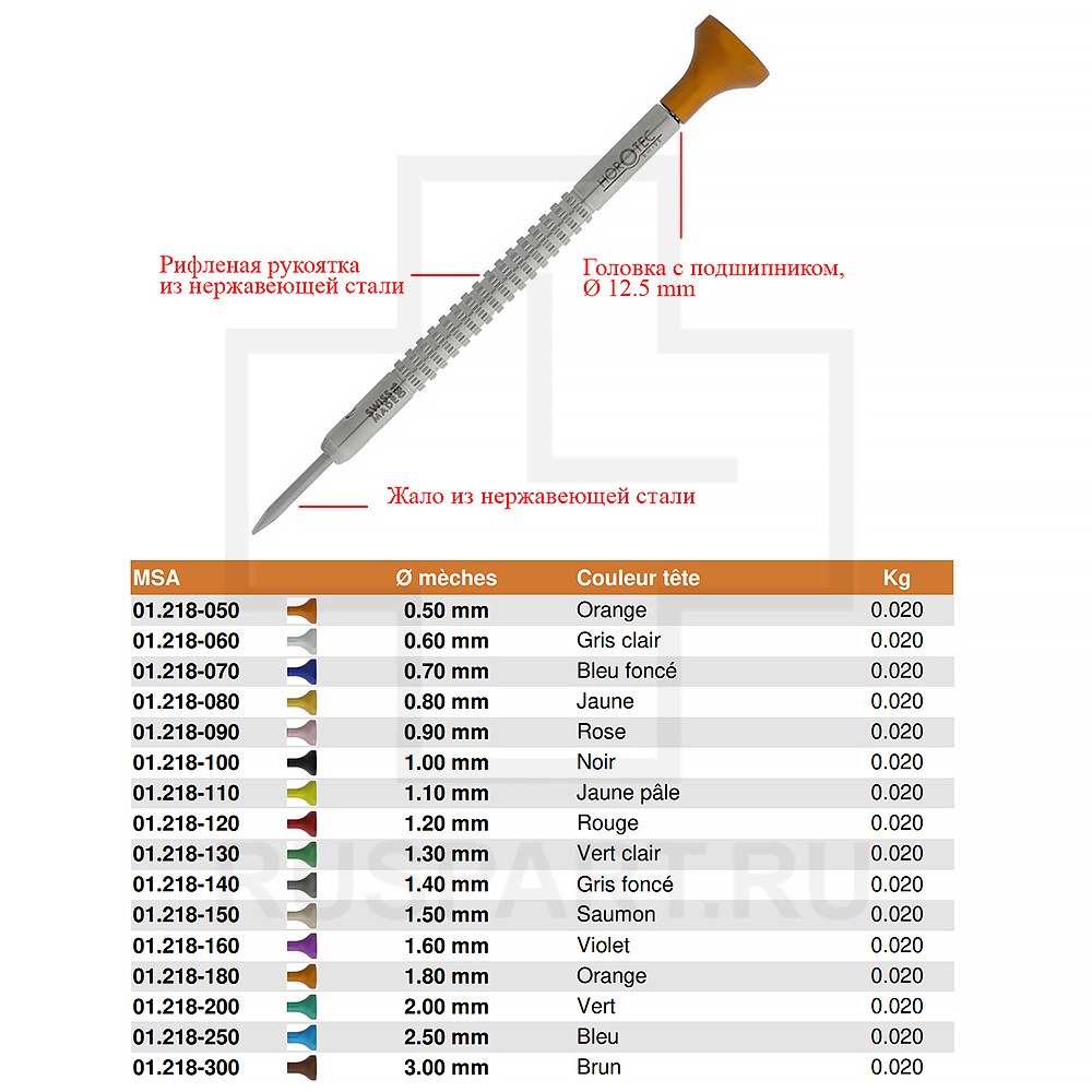 Набор отверток (с подшипником) HOROTEC MSA01.218-B (MSA01.201-B)Описание: Набор из 5 часовых отверток с рифленой стальной рукояткой MSA 01.201-xxx. Поставляется в пластиковой упаковке.
