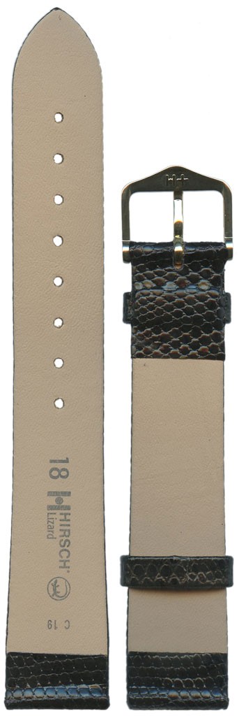 Ремешок для наручных часов HIRSCH Lizard NEW LОписание: Ремешок из натуральной кожи ящерицы, черный, 18/16 mm, желтый замок Толщина - 2.5 мм