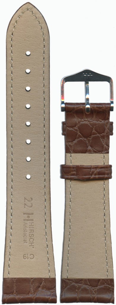 Высококачественная итальянская телячья кожа с тиснением под крокодилью кожу полуматовая обработка с естественным чередованием светлых и темных тонов чешуек и впадинок между ними. Подкладочная кожа HIRSCH Softglove. Гармоничная набивка. Традиционная форма HIRSCH для ширины крепления 20 и 22 мм. Тонкая строчка тон в тон. Выраженная линия тиснения на ремешке и шлевках. Застежка в красивом традиционном дизайне от HIRSCH.