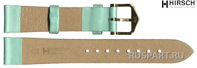 Ремешок из тонкой натуральной телячей кожи, обработан соком Алое Вера, ментоловый, 16/14 mm, замок желтый