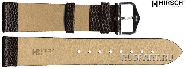 Ремешок из натуральной кожи, иммитация ящерицы, коричневый, 20/18 mm, белый замок.
