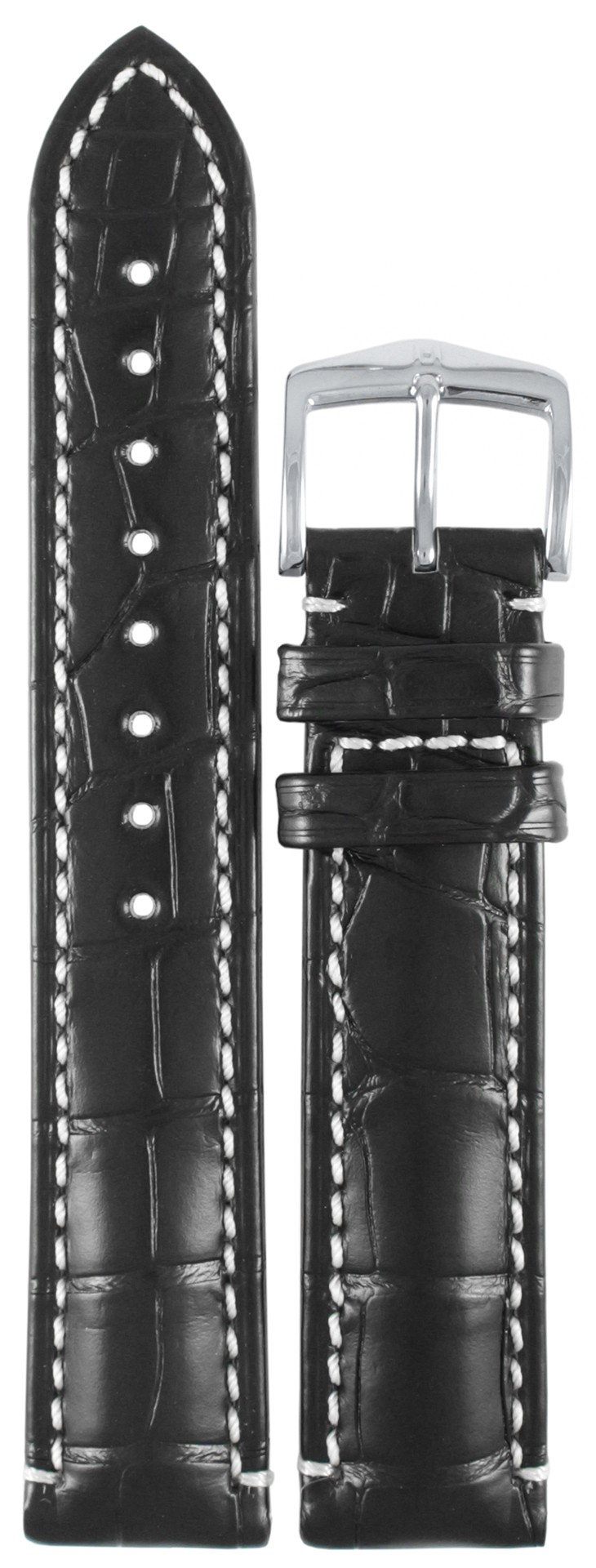 Ремешок из натуральной кожи луизианского аллигатора, матовый, черный, 19/18 mm, белый замок.