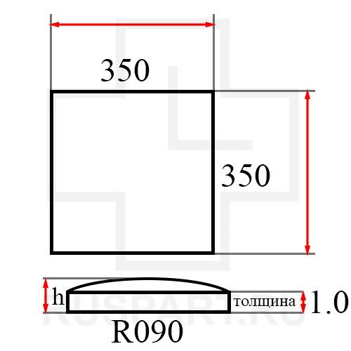 Стекло минеральное квадратной формы (линза) SUPERPARTS 350X350R90