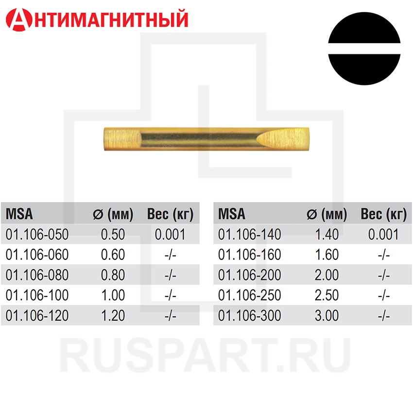 Антимагнитное сменное жало для прецизионных отверток MSA 01.101-xxx.