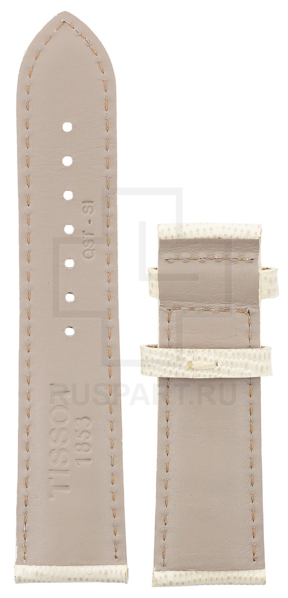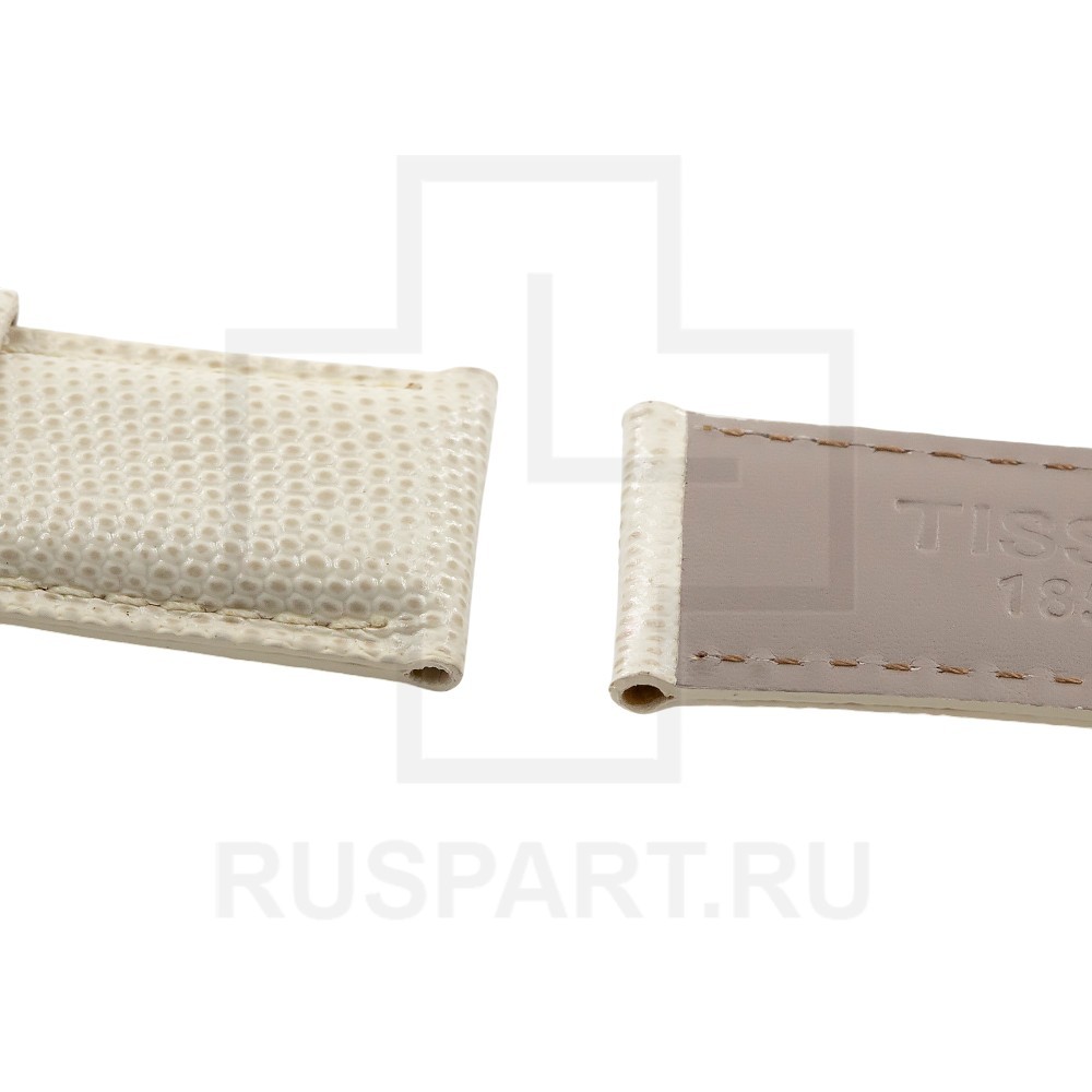 Кожаный ремешок TISSOT белого цвета, без замка. Ремешок имеет прямое крепление и подходит для всех часов Tissot с прямым креплением. Ремешок белый, теленок, 20/18, без замка, PRC 200 (T014.427)