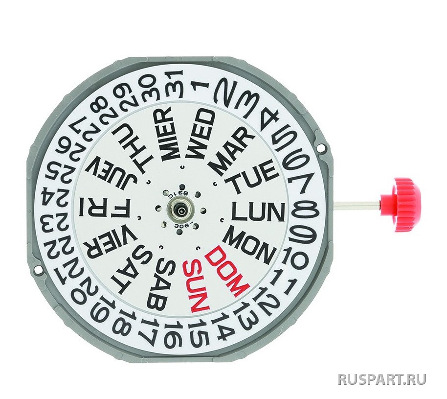MOVEMENT MIYOTA 2405, SIZE 13 1/2''', 3 HANDS, STANDARD HAND HEIGHT, DATE AT 3 DAY AT 3