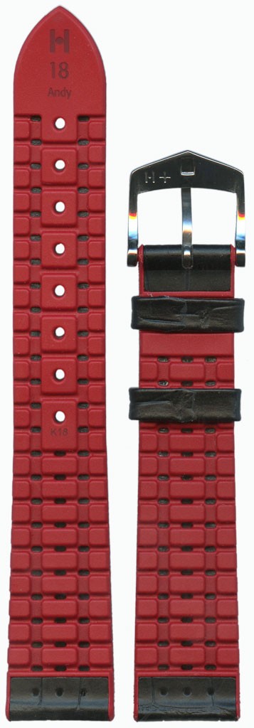 Серия PERFORMANCE. Основа ремешка - красный каучук, верхняя кожа - теленок черного цвета. 100% антиаллергенность, система влаго- и паропроницаемости , WR-300, защита от царапин гарантия на ремень - 30 месяцев. Застежка белая, размер 18/16 Лучшая итальянская телячья кожа с естественно выглядящим тиснением под аллигатора, полуматовая с характерным двухтоновым эффектом. Окрашенная каучуковая основа HIRSCH Premium. Спортивный классический дизайн. Запатентованная прошивка тон в тон. Интегрированный фиксатор ремешка. Высококачественная стальная застежка HIRSCH Classic Design.