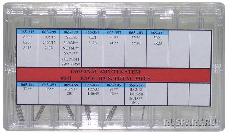 Набор переводных валов для мех-мов MIYOTA SUPERPARTS 641-stem kit, 13 размеров, 39 штук