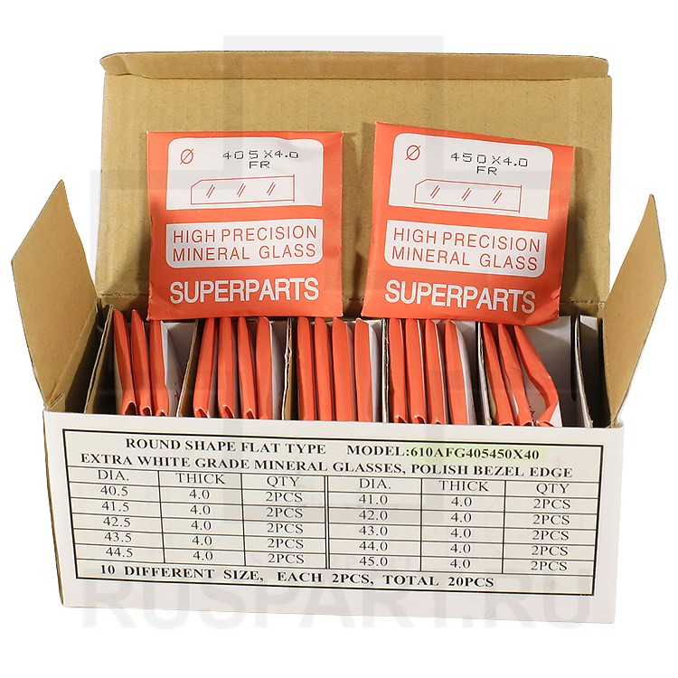 Стекла для наручных часов в наборе SUPERPARTS 20 шт, 4.0мм, 405-450мм