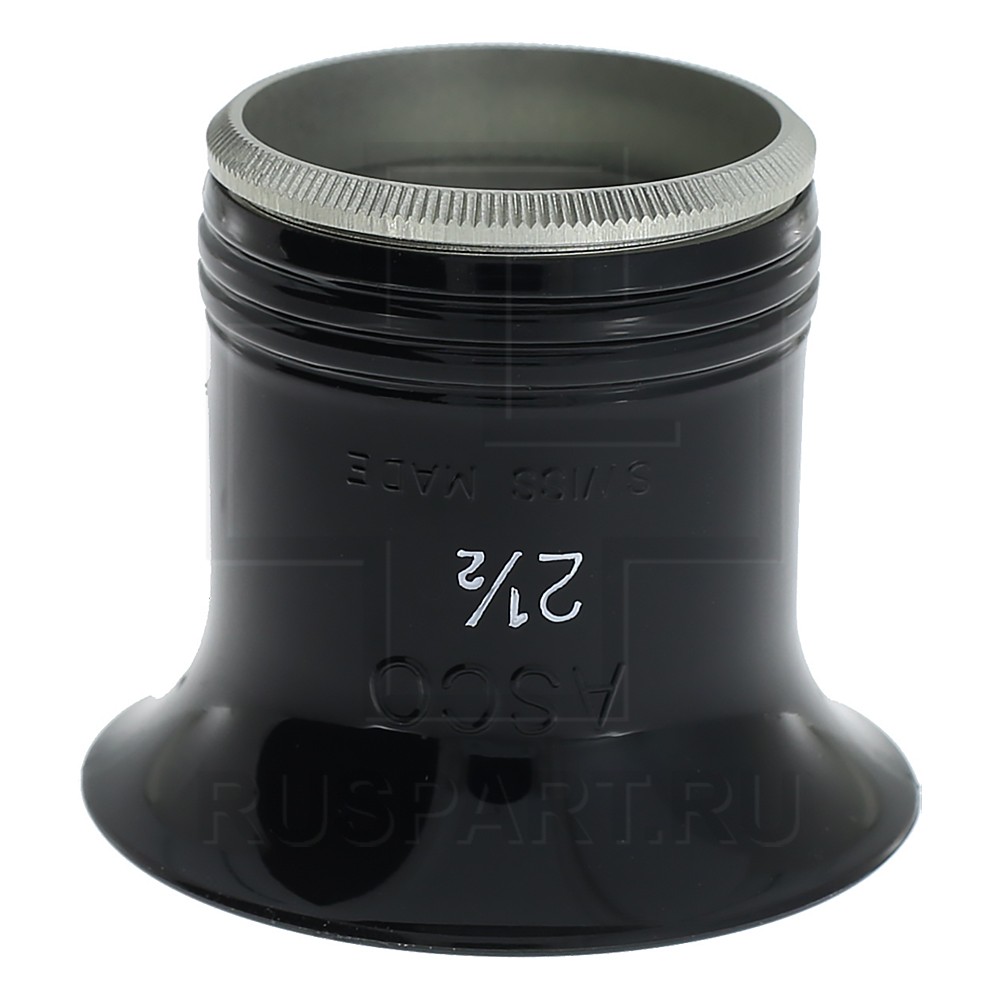 Черная пластиковая лупа ASCO классической формы с резьбовым аллюминиевым креплением линзы. Полированная снаружи, матовая внутри. Сменная линза O 25 мм.