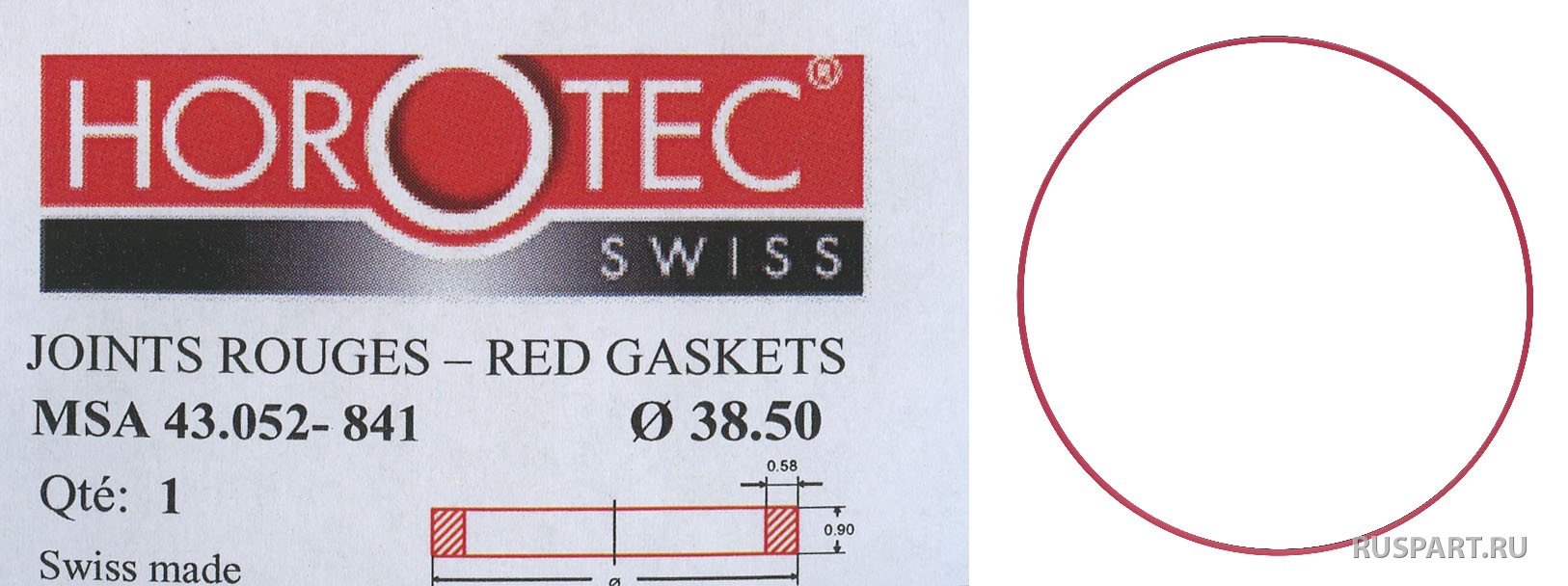 КРАСНАЯ ПРОКЛАДКА, A ВНУТР. 37,34 x B ВНЕШ. 38,50 мм HOROTEC d 38.5 mm