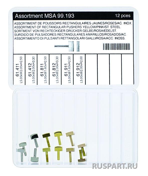 12 шт ASSORTMENT OF RECTANGULAR PUSHERS, STEEL COLOUR/YELLOW/PINK / 12 PIECES