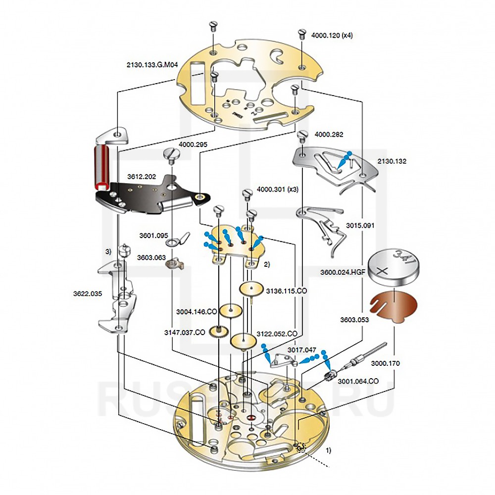 Механизм часовой в сборе RONDA 1015 HH1 D3