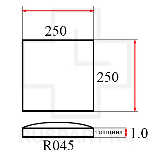 Стекло минеральное квадратной формы (линза) SUPERPARTS 250X250R45