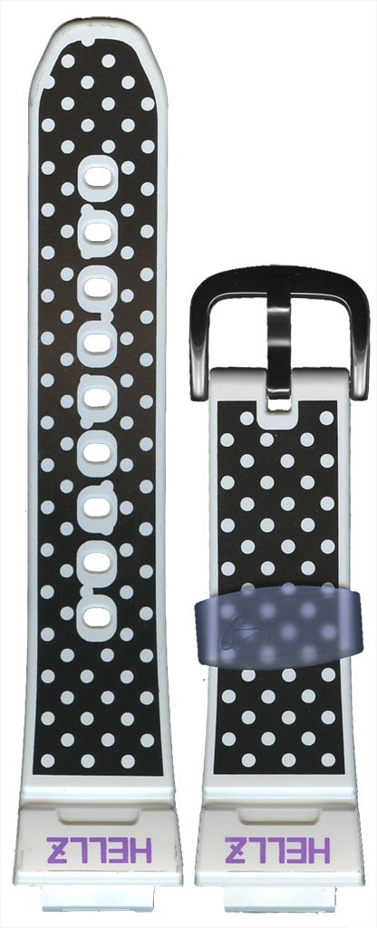 Оригинальный ремешок для часов CASIO черного цвета, белый горошек. Не вызывает аллергических реакций. Легко заменяется. Ремешок имеет уникальное крепление и подходит только для указанных моделей.