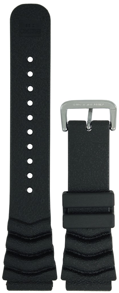 Резиновый ремешок Seiko черного цвета, пряжка стальная. Ремешок имеет уникальное крепление и подходит только для указанных моделей.