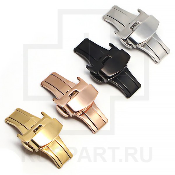 Застежка типа бабочка , 3-х составная с фиксатором, 18 мм. Цвет черный