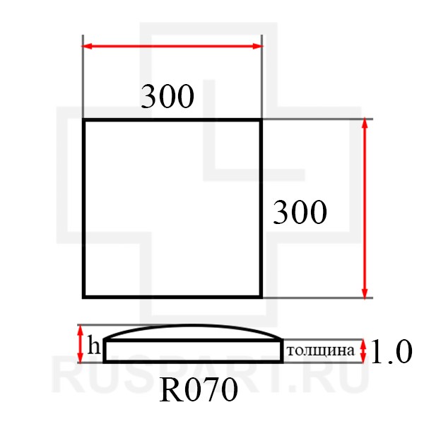 Стекло минеральное квадратной формы (линза) SUPERPARTS 300X300R70