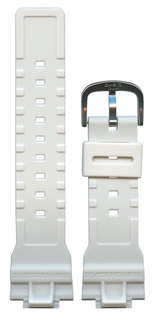 Оригинальный ремешок для часов CASIO белого цвета. Удобный и легко заменяется. Ремешок имеет уникальное крепление и подходит только для указанных моделей.