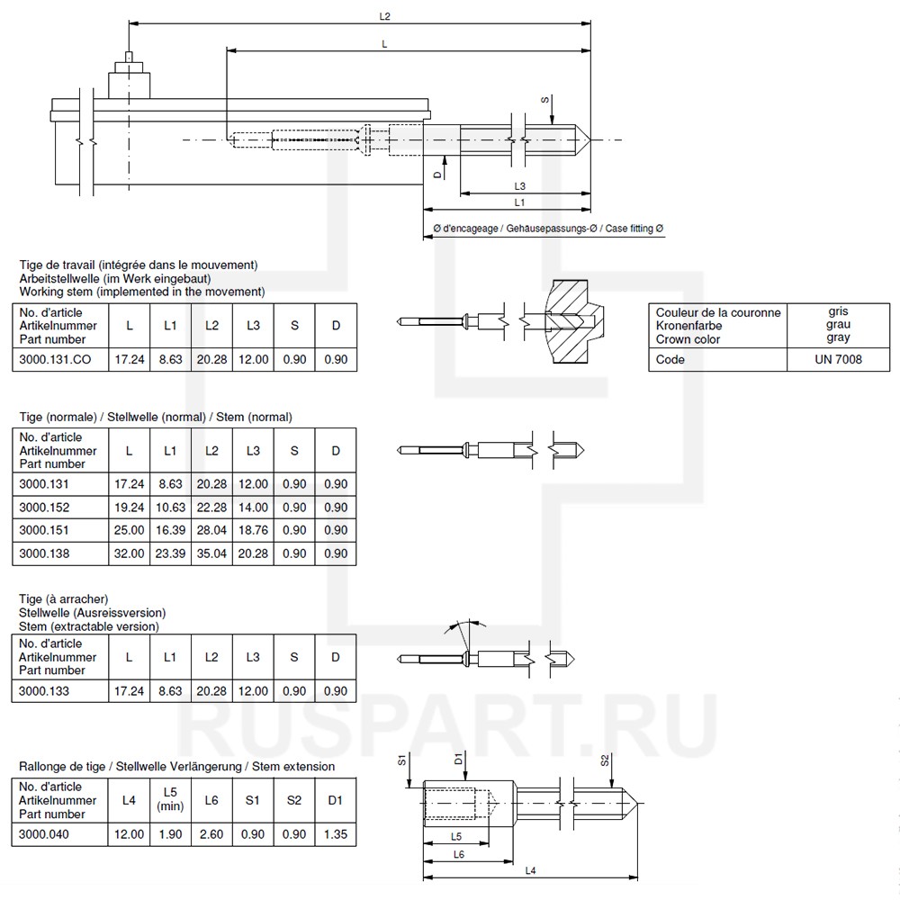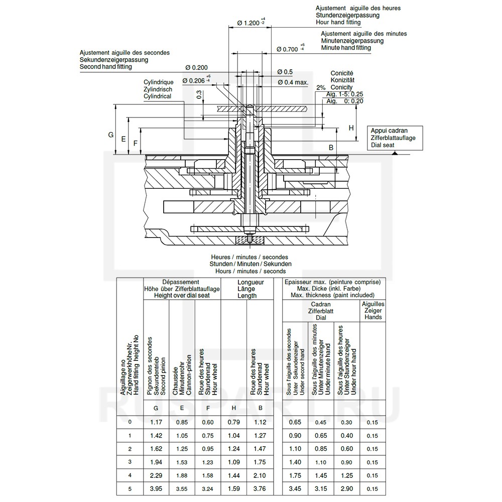 Переводной вал RONDA 772Описание: 0,9 - 25 MM