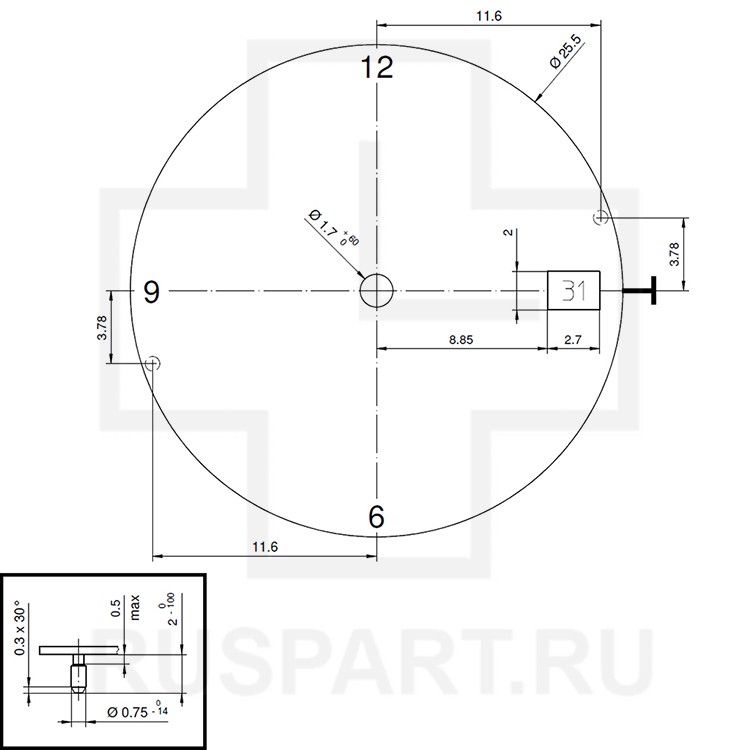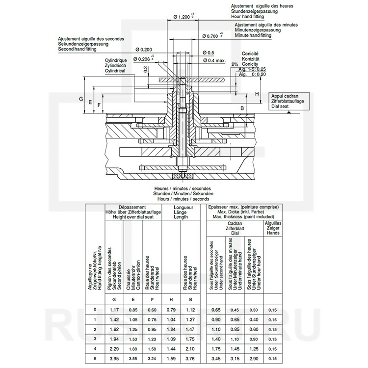 Высота секундной оси 1.42 мм.