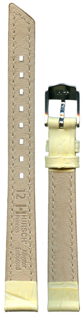 Ремешок из натуральной кожи, имитация аллигатора, ваниль, 12/10 mm, замок белый