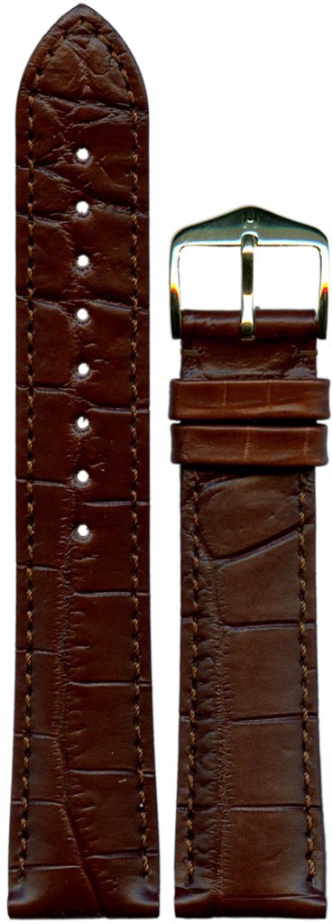 Ремешок из натуральной кожи нильского крокодила, матовый, коричневый, 20/18 mm, желтый замок