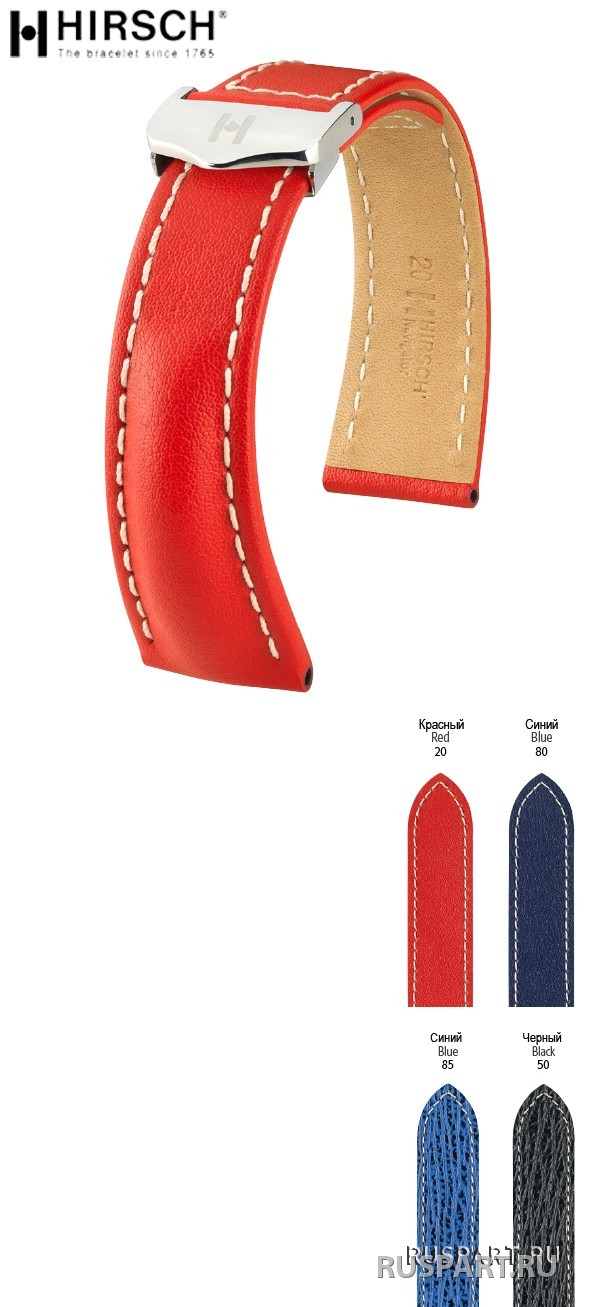 Прочная итальянская телячья кожа с особенно четким зернистым рисунком. Подкладочная кожа HIRSCH Silkglove. Атлетичная набивка. Спортивный кончик ремешка. Подчеркнуто контрастная строчка. Поперечный шов на кончике и у застежки. Уникальная складная застежка. HIRSCH Magic из нержавеющей стали.