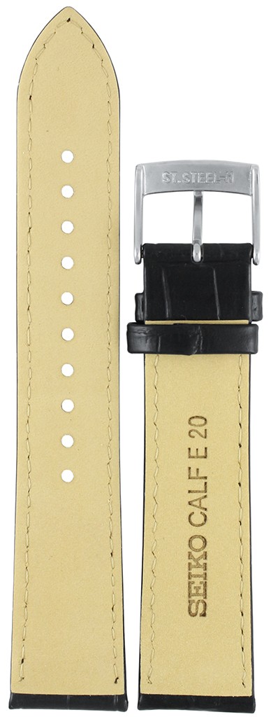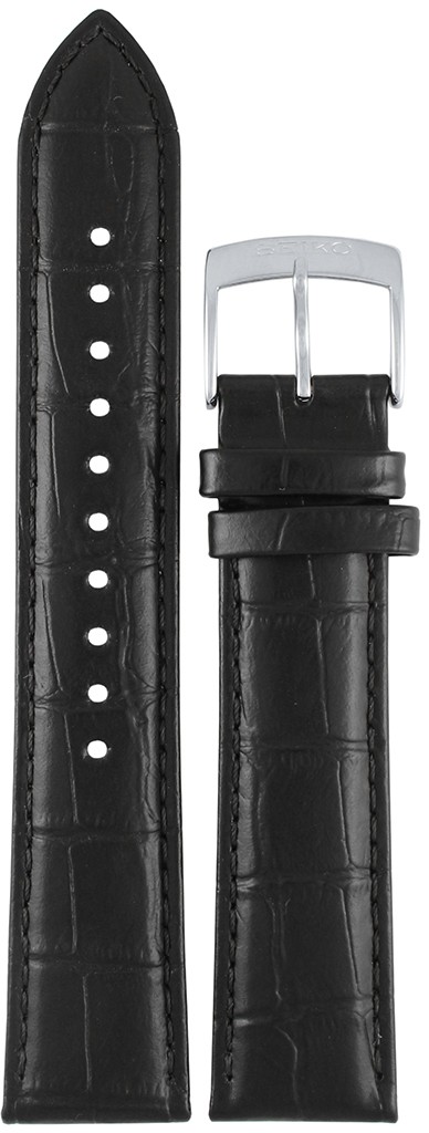 Кожаный ремешок Seiko черного цвета, пряжка стальная. Ремешок имеет прямое крепление и подходит для всех часов SEIKO с прямым креплением.