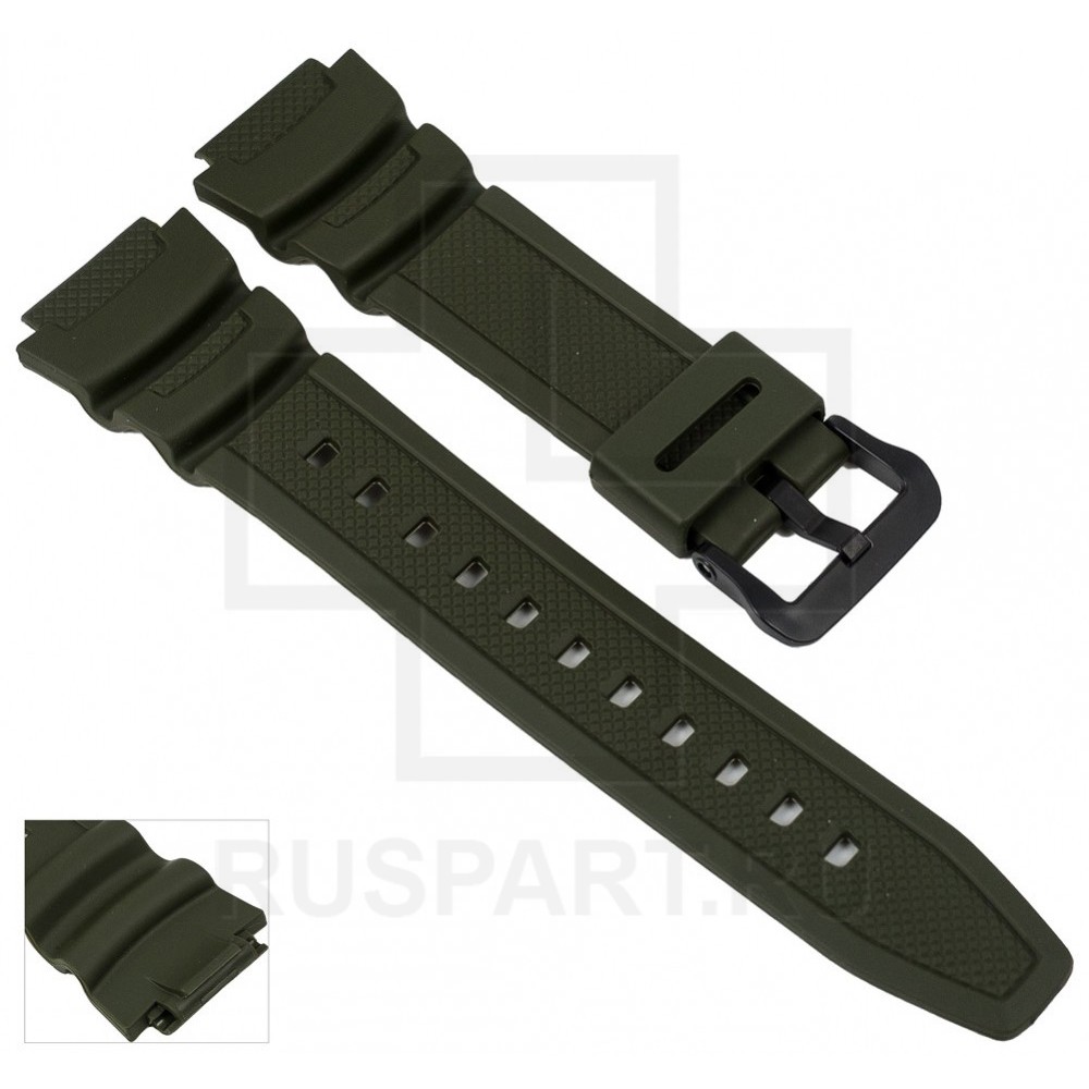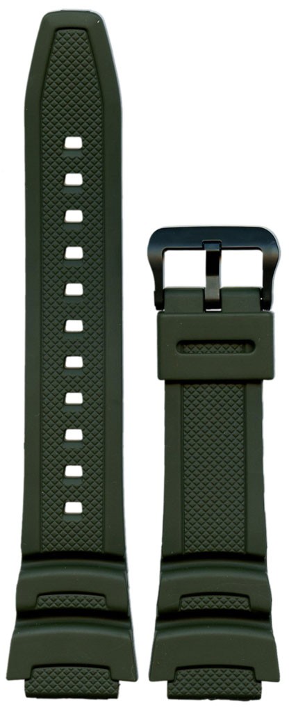 Оригинальный ремешок для часов CASIO зеленого цвета. Устойчив к внешним воздействиям. Легко заменяется. Ремешок имеет уникальное крепление и подходит только для указанных моделей.