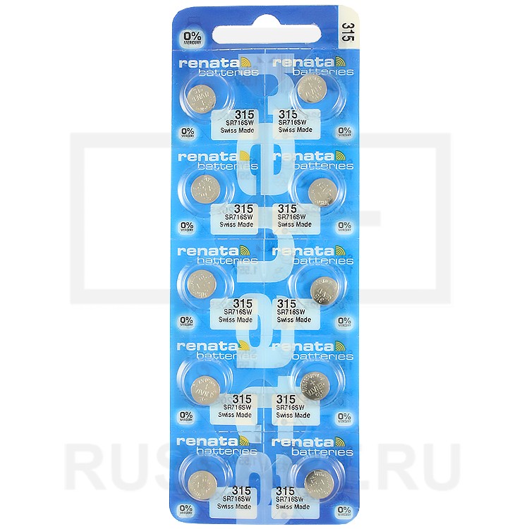 Батарейка кнопочная, оксид серебра RENATA SR716SWОписание: упаковка 10 шт